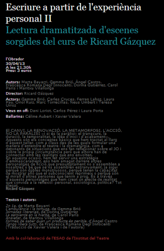 Demà a la Sala Beckett lectura dramatitzada de peces curtes dirigides per Ricard Gázquez.